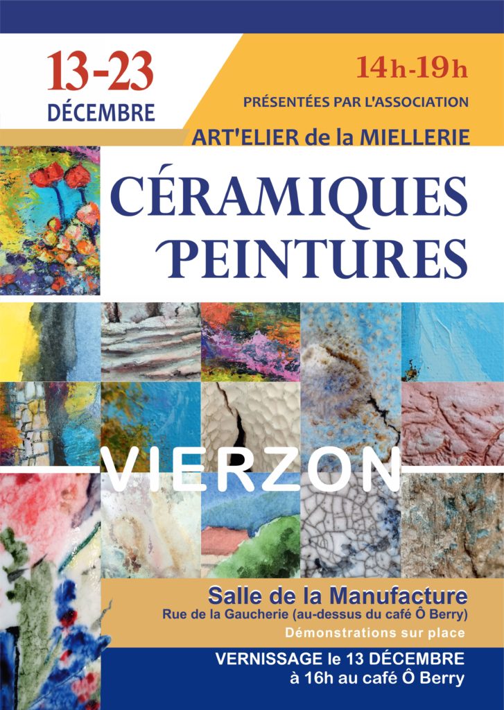 Vierzon et Lazenay, ou je présente « Les maisons des villages » Faïence ou grès engobés, acrylique et collage.